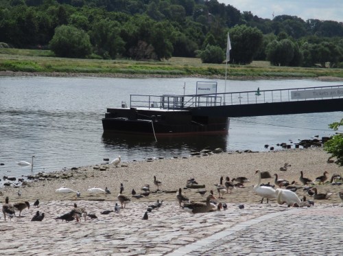 Schwäne, Graugänse, Tauben – Profiteure der attraktiven Lage. Es fällt immer etwas ab – falls nicht gar aktiv gefüttert wird.