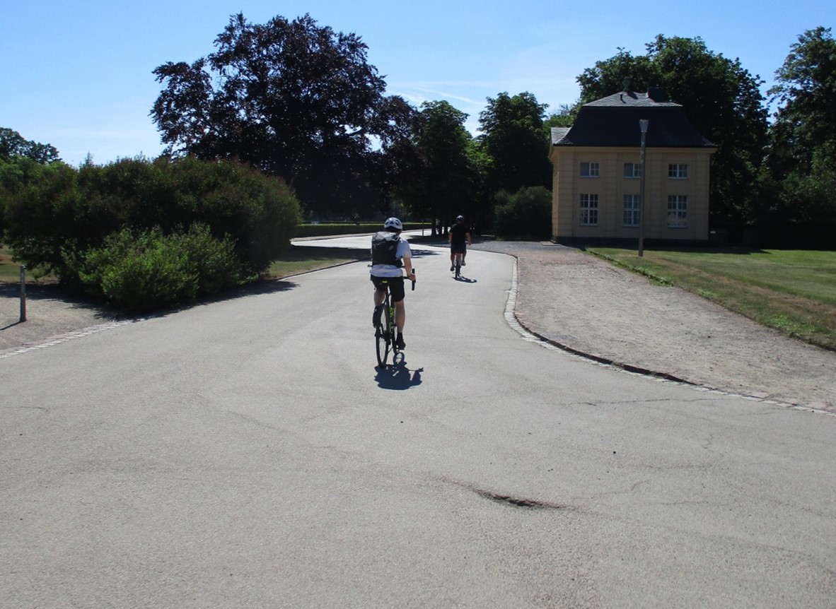 Richtung Ostseite – zweifellos eignet sich der ebene Fahrbahnbelag hervorragend zu mancherlei sportlicher, oder auch nur Durchfahr-Aktivität.