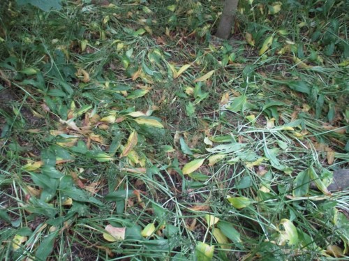 Vermutlich durch Baumaßnahmen gestörter Bodenwasserhaushalt äussert sich durch Zeichen mindestens zeitweise intensiven, punktuellen Eiseneintrags. – Dass man gegen schädliche Eisenauswirkungen etwas tun kann, ist hier im Blog hinreichend beschrieben.