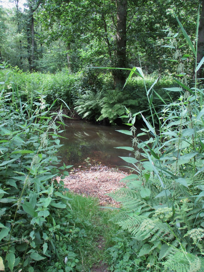 Erle, Weide, Eiche, Buchenbestand im Trockeneren, Hopfen als Ranker – sandige Bereiche, evt. frühere bachbegleitende Dünen auf Moräne, sind mit Nadelholz, Kiefer, Fichte, Tanne bestanden.