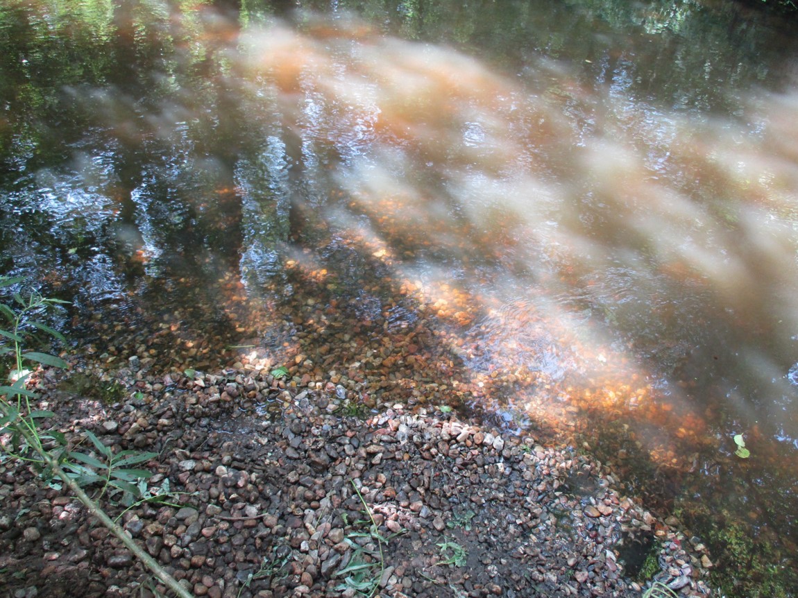 Sieht fast wie frisch belaicht aus (April ist zu lange her …) – der jetzige Eindruck ist bedingt durch die Untersuchungen der Schüler. Untersuchern muss immer bewusst sein, dass jegliches Beproben im Zweifelsfall eine (Zer-)Störung ist. Daher sind die Aktivitäten zeitlich und punktuell zu begrenzen.