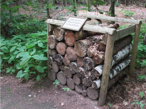 „Ein Raummeter Holz“ im Wildpark Eekholt, gute Veranschaulichung auch für 1 m³ Abfluss pro Sekunde – bezogen auf Überbreite des Bachs, auf Menge Eimer Wasser, die über einem ausgeschüttet werden pro Sekunde … – Was auch immer …