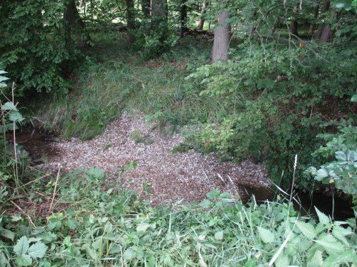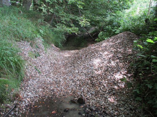 Der umflossenene kleine Steinhügel ist der im Winter genutzte, nahezu unverändert erscheinende Laichplatz.