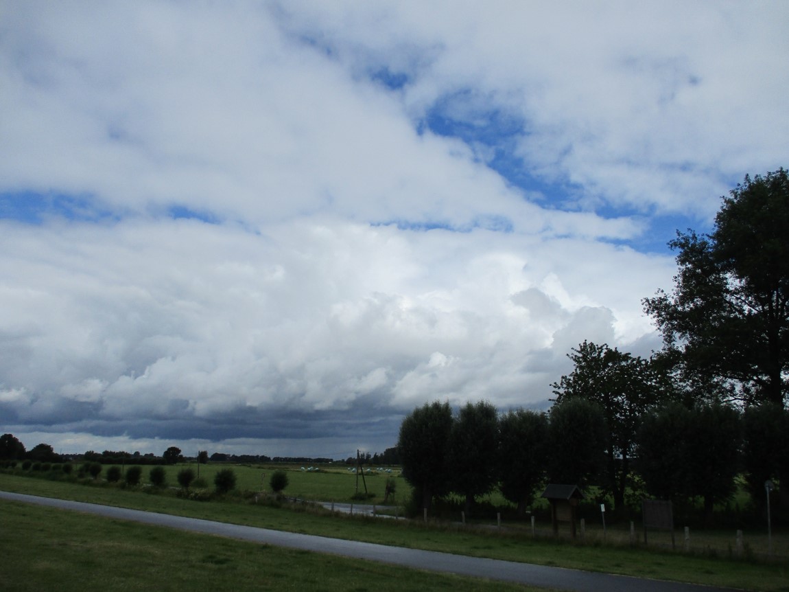 Das Wetterradar zeigte Lücken in Regenfronten (die letztlich in der Summe über den Tag wieder nur den Oberboden befeuchteten, wenig von befestigten Flächen abfliessen liessen) – also: Mut zur Lücke, Runde gegen den Uhrzeigersinn Geest – Marsch, hinter dem Elbdeich zurück.