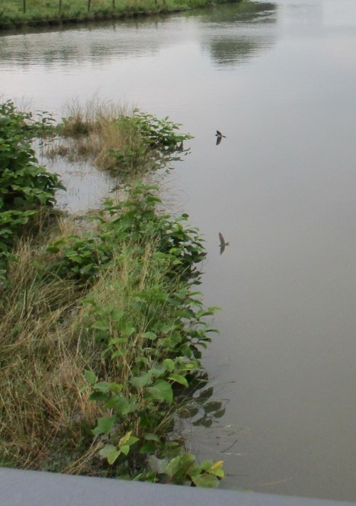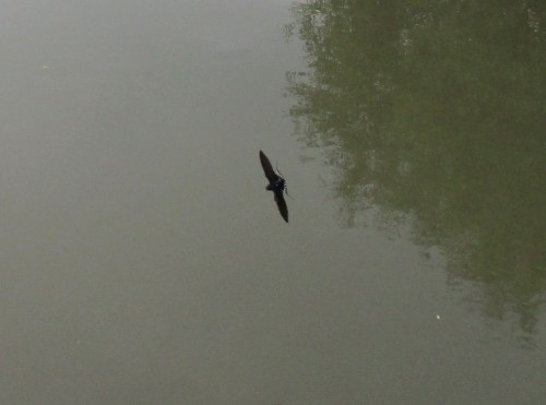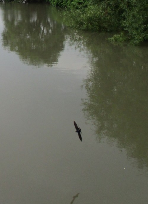 Rauchschwalben finden offenbar angesichts der Zwischen-den-Schauern-Situation fette Beute unter der Brücke. Ein munteres Treiben, eine Seite rein, durchsausen, bremsen, wenden …