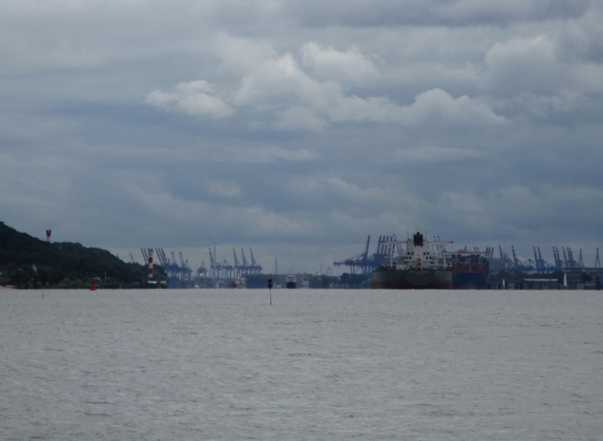 Beim Anwandern von Wedel aus, der Saugbagger Pedro Alvarez Cabral, der da gerade aus Richtung Kai Altenwerder seewärts unterwegs ist, Mischsedimente gesaugt hat – und damit bei Helgoland die Nordsee „anreichert“. [Stimmt gar nicht, sagen die Offiziellen, das macht nix.]