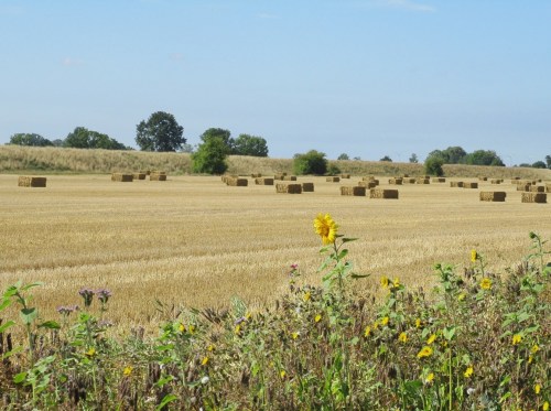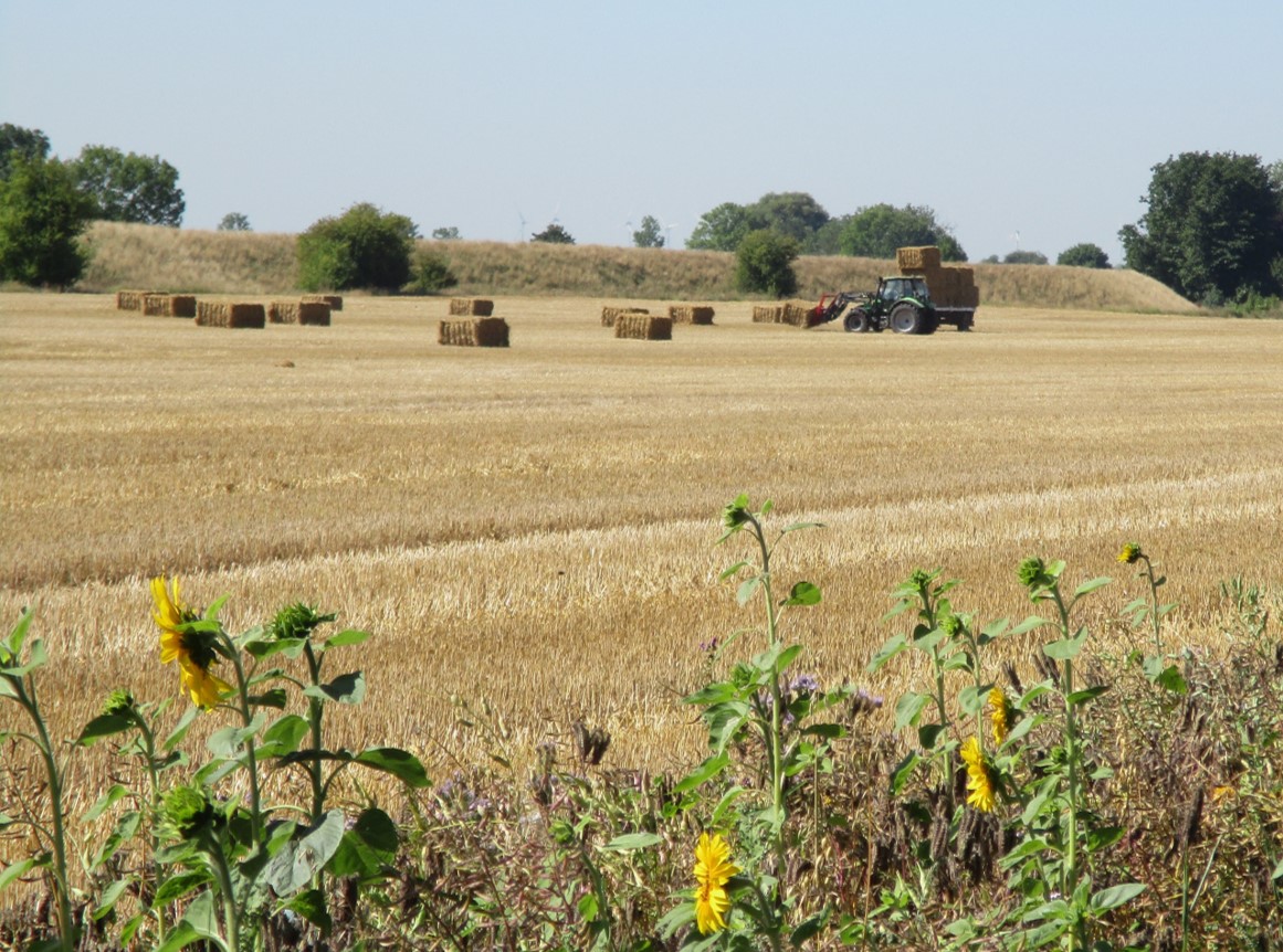 Das Stroh auf dem abgeernteten Weizenacker Holm – Hetlingen wurde inzwischen gepresst, teils abgefahren.