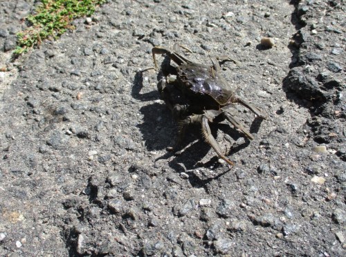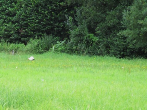 Rechts vorn im Bild sieht es allerdings so aus, als hätte der Bulle nach Wasser gegraben, ein ordentliches Loch ist entstanden. – Wer weiss, vielleicht reicht auch ein Staubbad gegen Parasiten?
