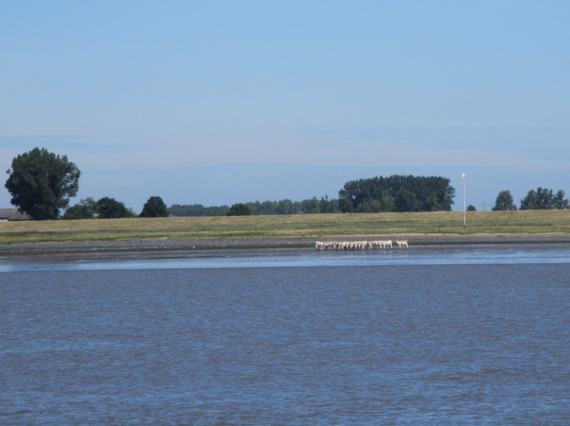 Hier das bekannte Verhalten der Fährmannssandrinderherde – sie folgt dem ablaufenden Wasser über das Süßwasserwatt bis zur Fahrrinne (Rückkehr mit auflaufender Flut).
