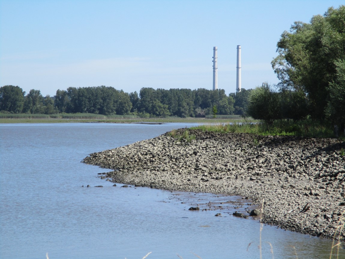 Am Wassererlebnisbereich der Wedeler Au fliesst es noch ein wenig – ein Großteil der sonst überflossenen Fläche besteht allerdings nun aus aufgeheiztem, trockenem Kies.