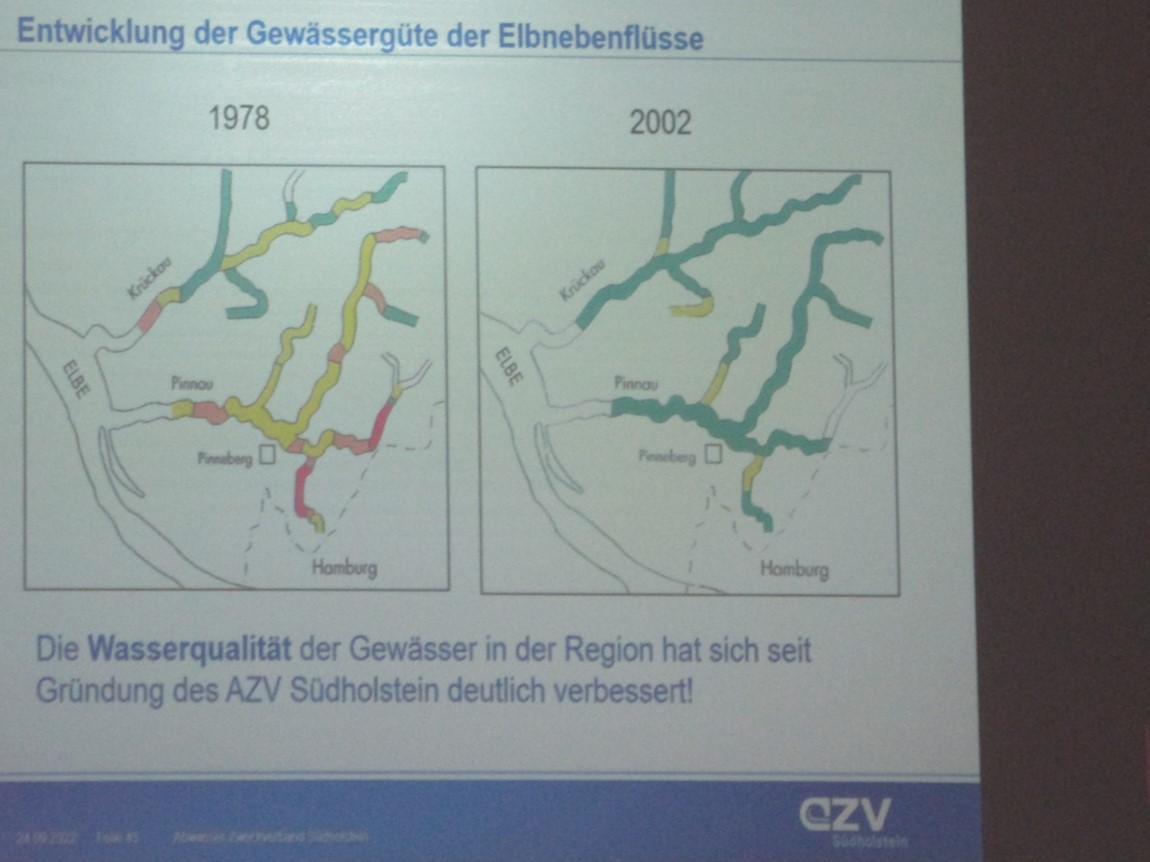 Ein interessanter Vortrag führte uns durch die Entwicklung, übermäßige Gewässerverschmutzung, Abwasserreinigung bis heute, heutige und sich abzeichnende Erfordernisse.