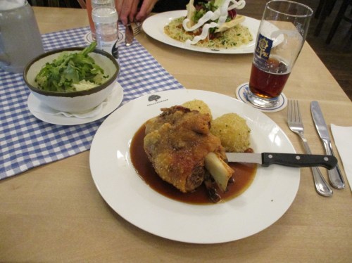 Der wahre Grund der kleinen Wanderung: Haxe mit Schwarzbiersauce, schickem Weisskrautsalat (statt Sauerkraut), dazu Schwarzbier.
