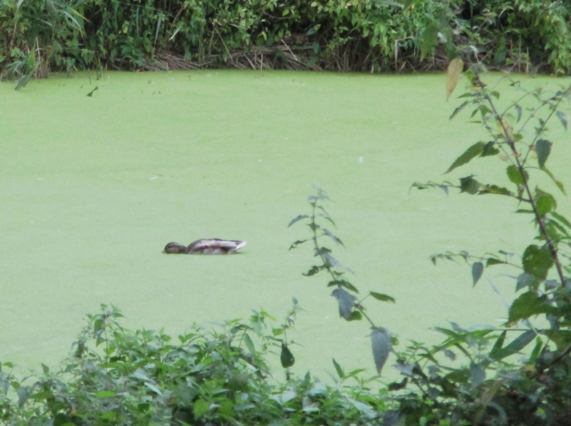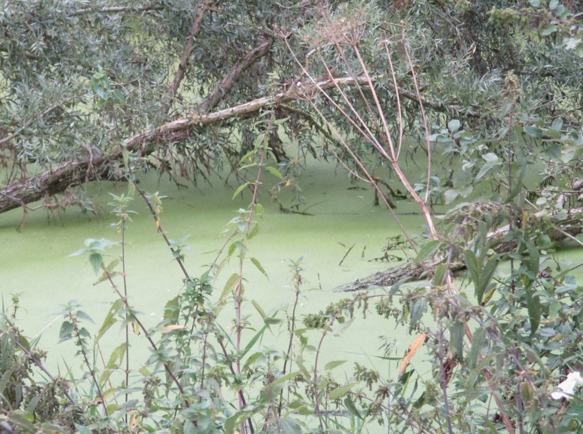 Auf einer gegen-den-Uhrzeigersinn-RadelRundTour stoppte ich kurz vor dem Elbdeich am Alten Heuhafen Hetlingen. Der liegt nach Bau des in den 1970ern „nach vorn gelegten“, verkürzten Elbe-Hauptdeichs, als Altwasser abgeschnitten, still vor sich hin.