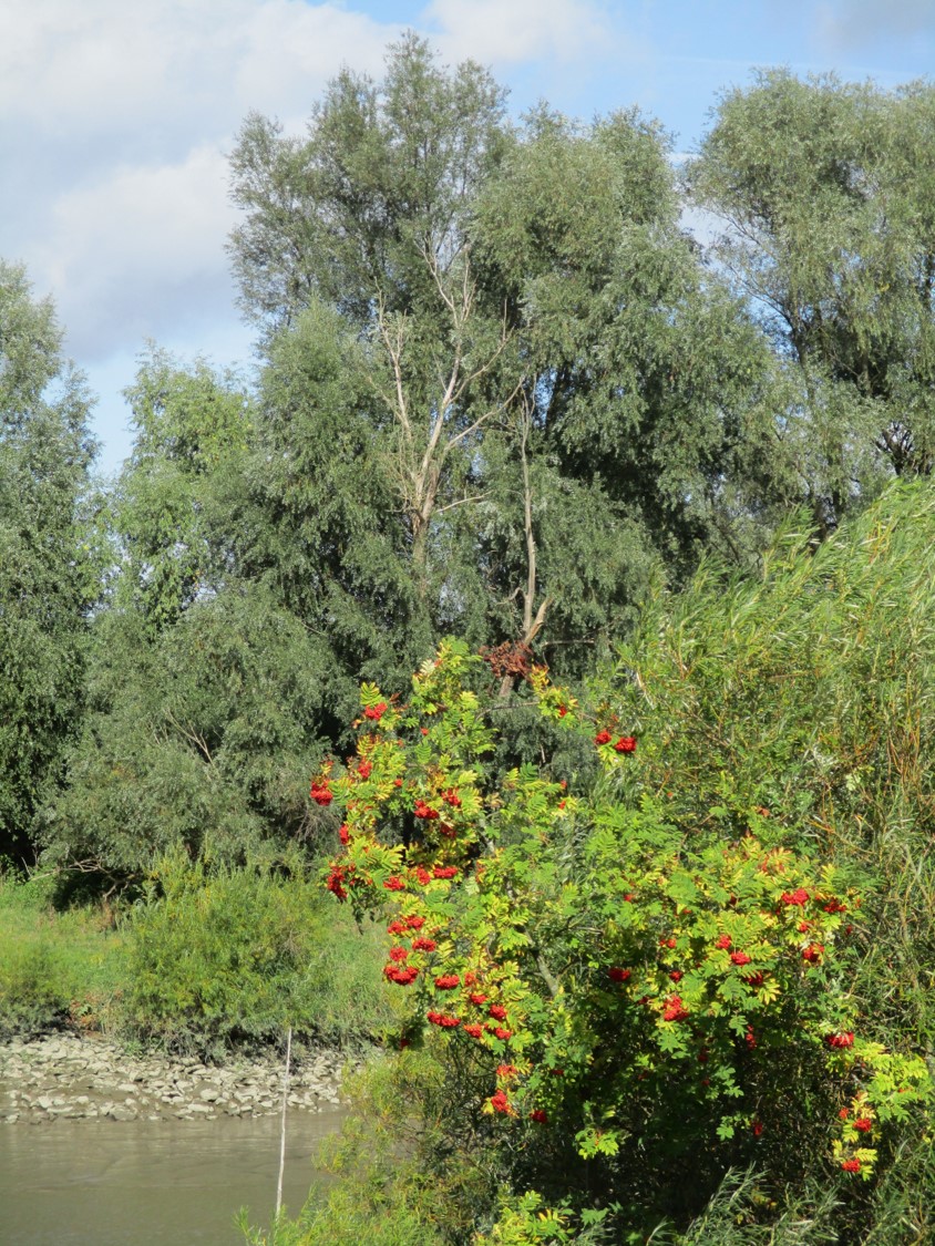 Anradeln zur Elbe, Vogelbeeren, Tideauwald im Mündungsbereich Wedeler Au / Binnenelbe in die Tide-Elbe.