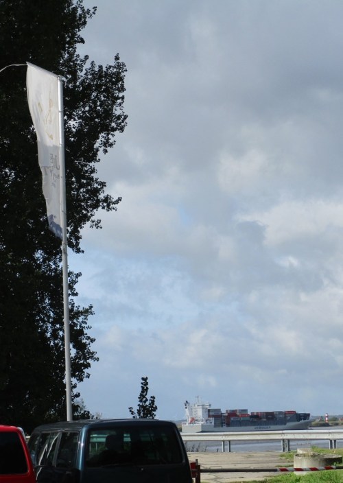 Die Lühe-Schulau-Fähre zieht vorbei. Unsere Touren „drüben“ haben wir wohl hinter uns, erwarten noch niedersächsischen Besuch vor Wechsel zum Winterfahrplan.