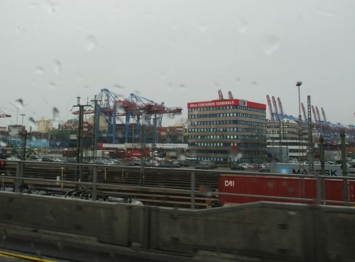 Los ging es in Hamburg, wo uns nach Durchqueren des Elbtunnels Regen und Sturmwind gen Süden begrüßten.