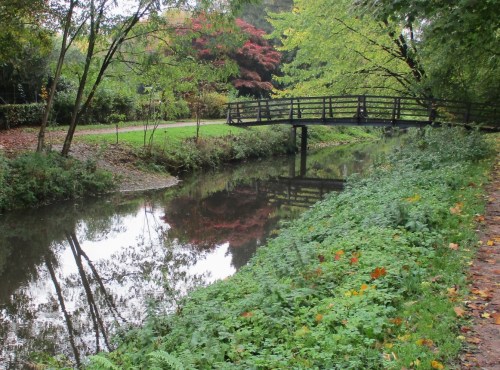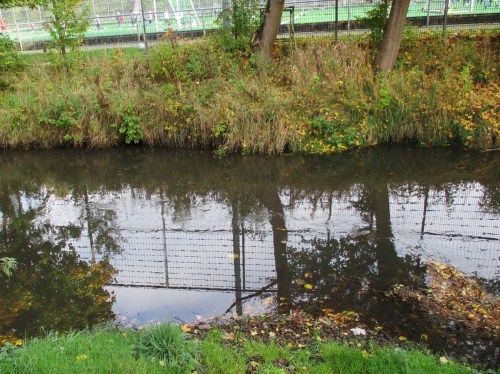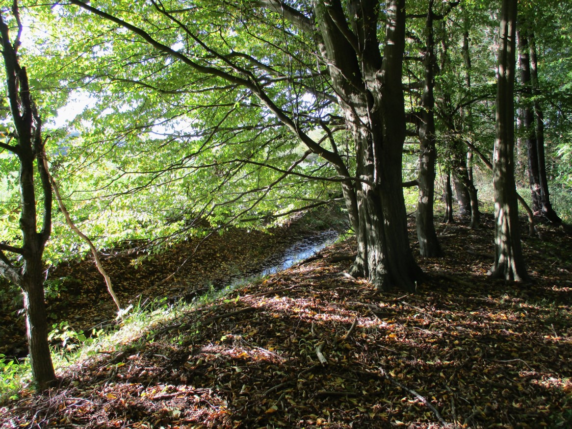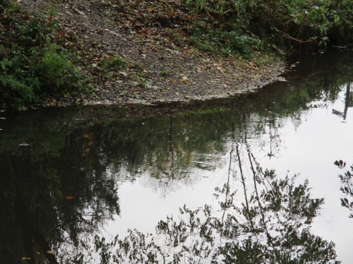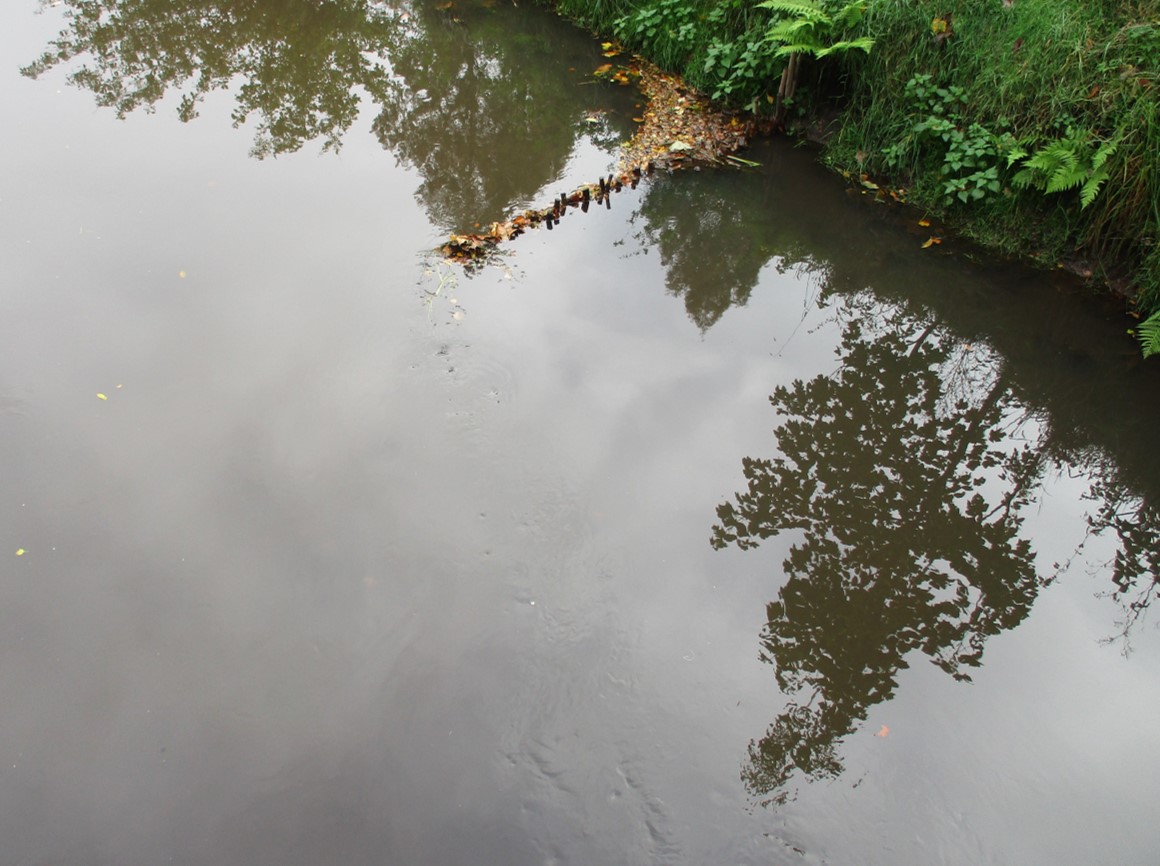 Deutlich erkennbar: Neu geschaffene Tiefenvarianz im Querschnitt, zeitweiliges Aufhalten von Blättern, Turbulenz in der mittig gelenkten Strömung.