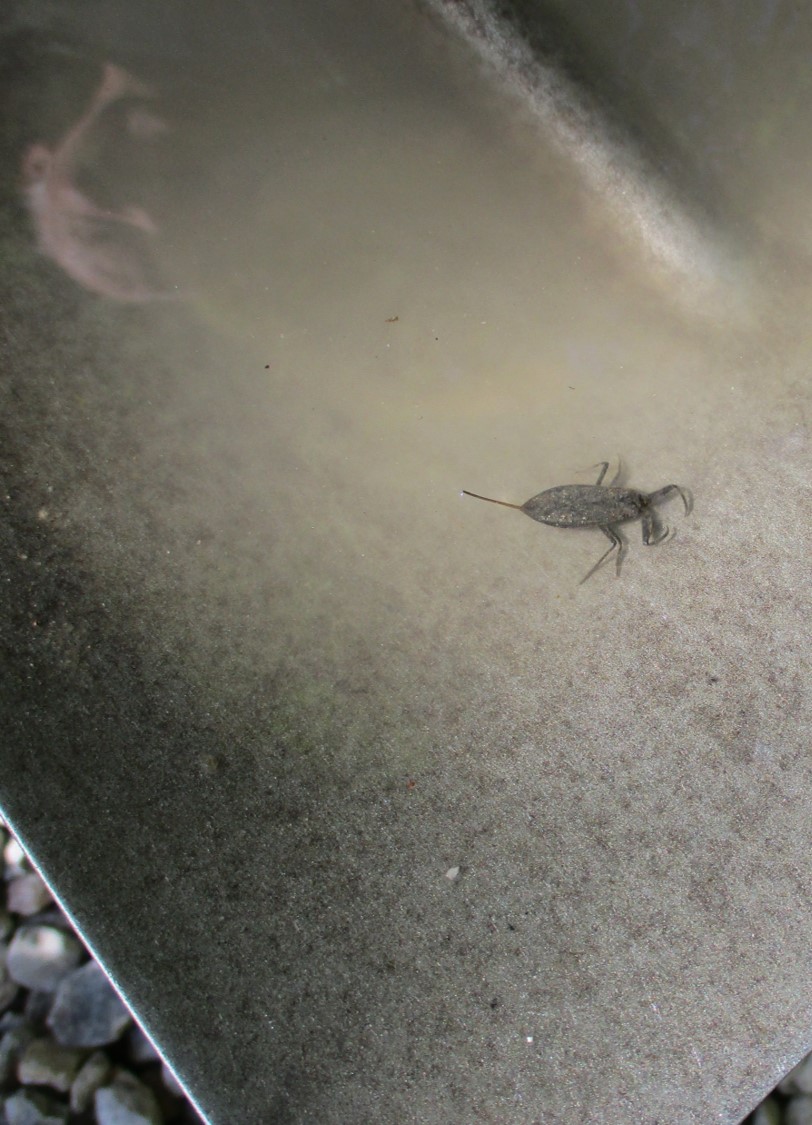 Wasserskorpion in Restwasser – je nach Intensität und Dauer der Sommertrockenheit erobern zeitweise nur anfliegende Insekten solche Strecken.