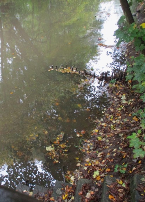 Einer der älteren Testsammler – gut zu erkennen, wie hier durch neue Stillwasserbereiche mit vorübergehender Laubablagerung Speisekammern für Gewässerorganismen entstanden sind.