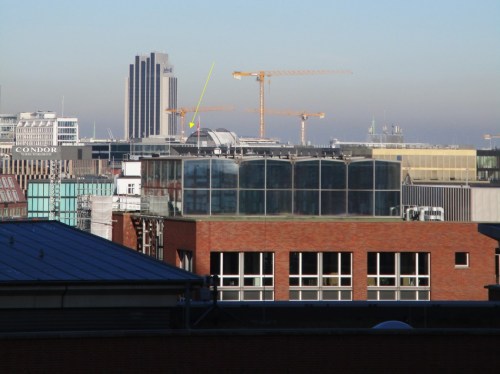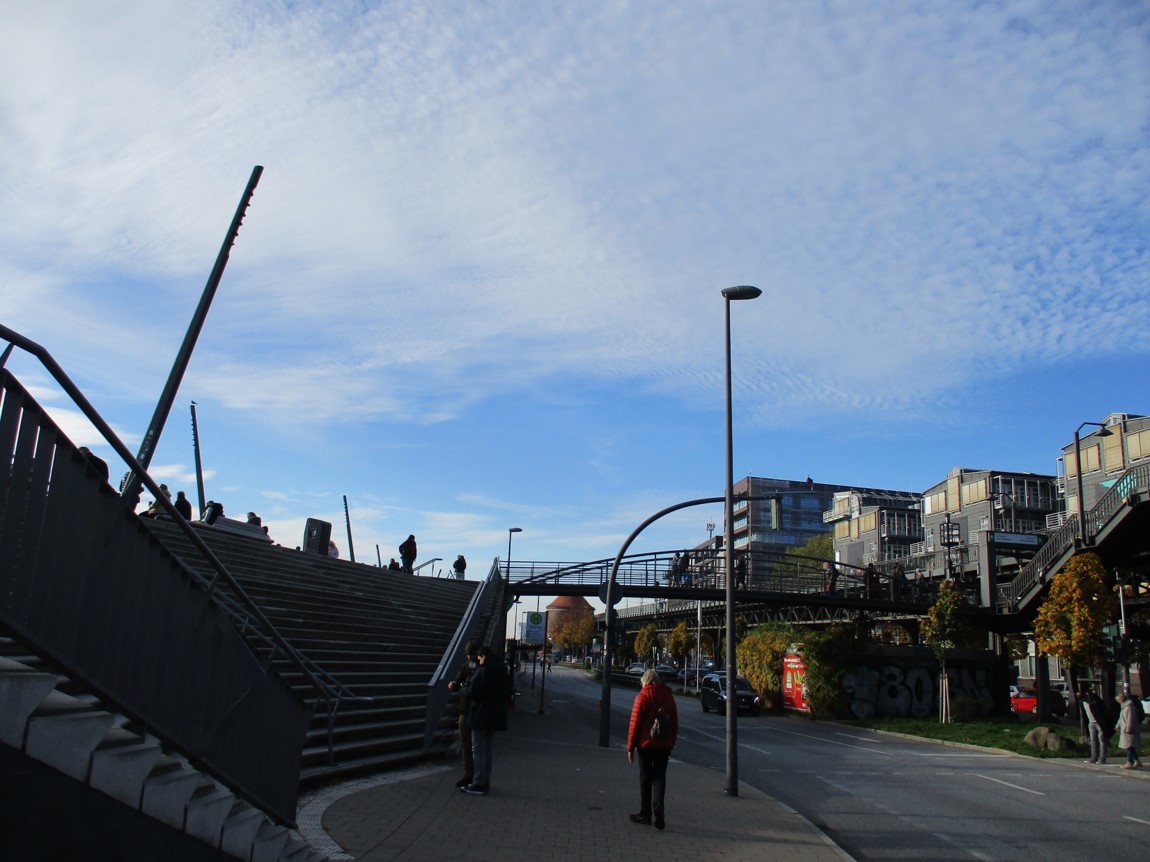 Blick nach Süden, U-Bahn, Hochwasserschutzanlage – wir sind nicht weit von der Elbe entfernt.