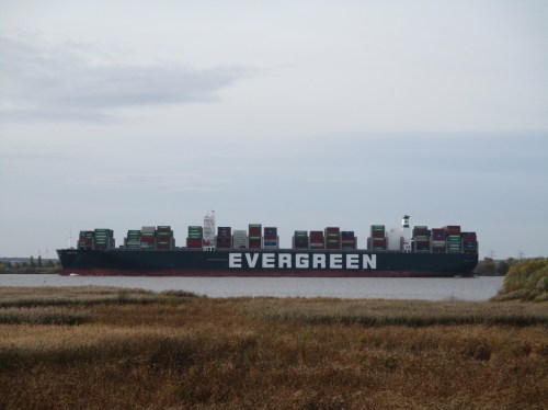 Da wir die Ever Given bei Angang zur Vogelstation sahen, suchte ich sie zu Hause über marinetraffic und die vergangene Strecke des längst im Hafen Hamburg liegenden Schiffs. Dabei stellte sich heraus, dass auch sie – gegenwärtige Charakteristik hochgelobter Logistik! – vor Helgoland mindestens eine „Ehrenrunde“ gedreht, wenn nicht gar länger gelegen hatte.