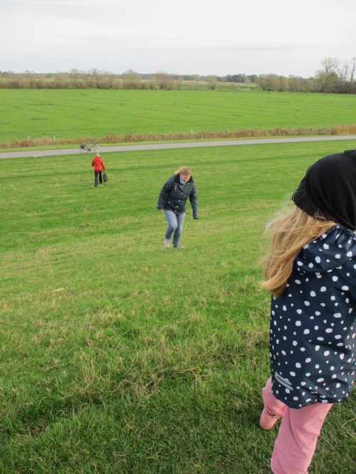 Mein Bericht über die Beobachtung jenseits des Deichs bringt Seit- und Aufwärtsbewegung in meine Begleiterinnen – zuerst die Kleine.