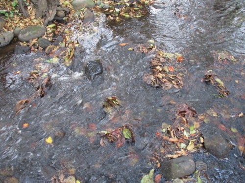 Raue Rampe im Herbst, dynamische Blattsammlerin (analog Kiesrauschen, Treibselsammlern aus Hölzchen und Stöckchen).