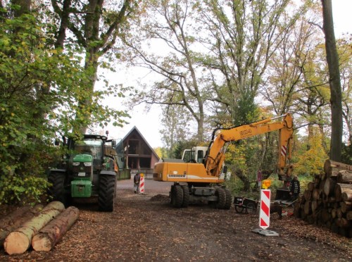 Die unmittelbare Kiesentnahme aus der Mulde vor Ort hat sich, so nicht unmittelbar aus der Mulde geschüttet wird, als optimal herausgestellt.