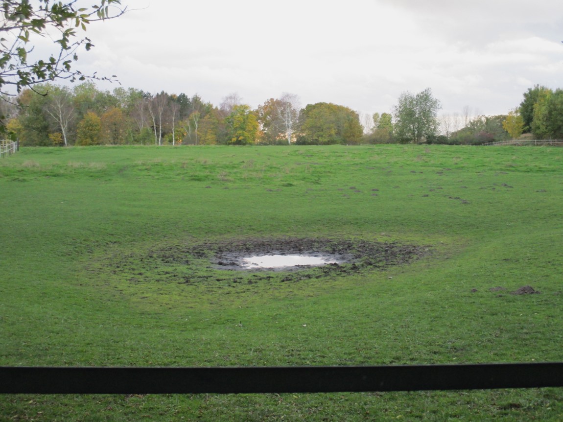 Das – zur Zeit ziemlich trockene – Tal Richtung Bilsbek-Aue lässt das ursprüngliche Natur-Idyll erahnen. (Jetzt ist es – seit langem – ein menschengemachtes, anderes.)