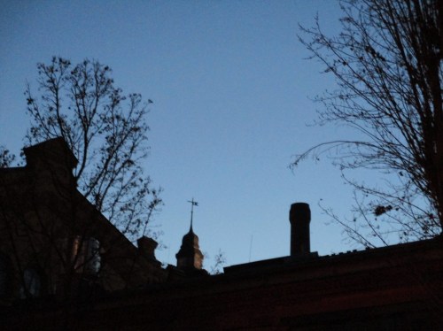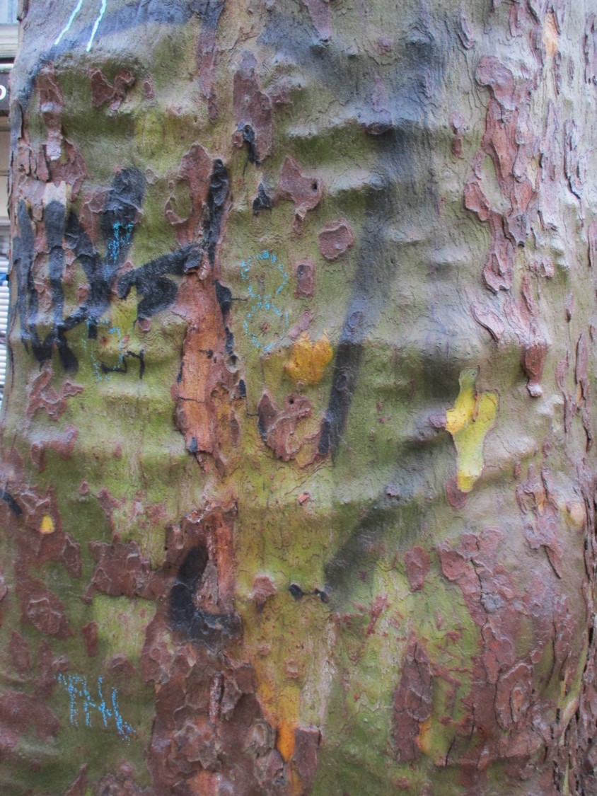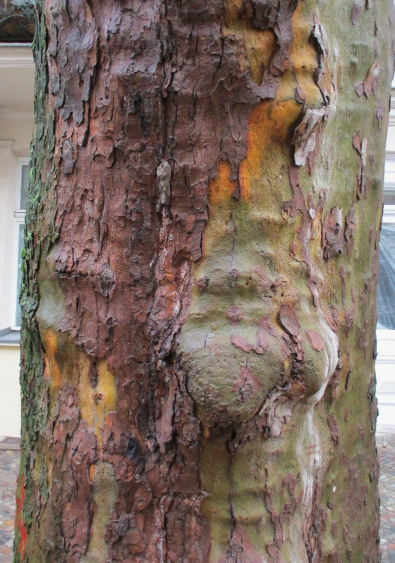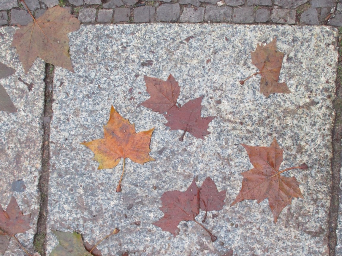 Als wir mit Essen fertig sind, treffen überraschend unsere Berlinerinnen ein. Wir zahlen und gehen, Herbstblätter vom Stadtbaum Platane im Blick, Richtung Auto.