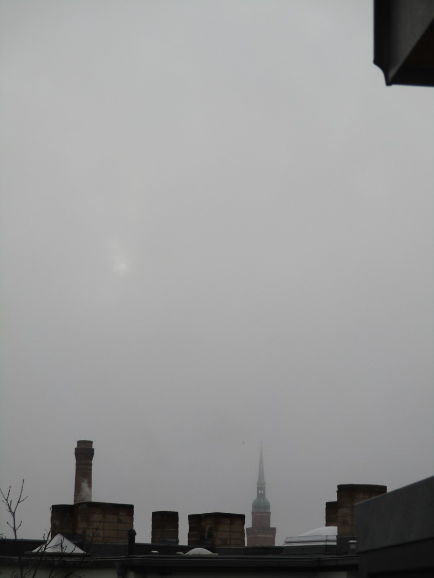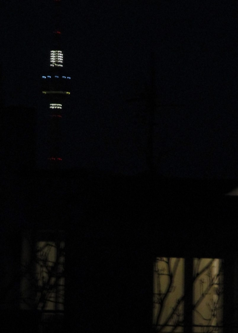 Der Ausblick ist begrenzt. Wettertechnisch präsentiert sich der Fernsehturm nur als unvollständiger Stummel.