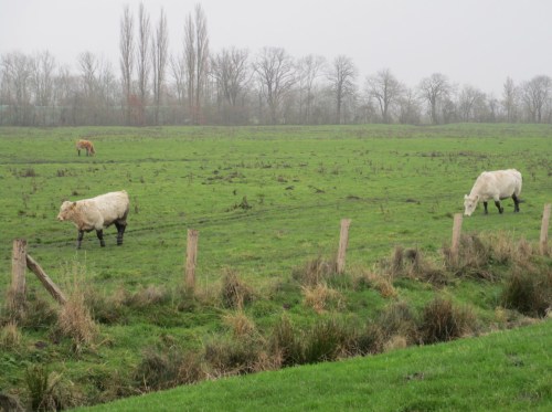 Die Rinder sind wieder „gestiefelt“. Kleinere bleiben jenseits der nun tiefgründig matschigen Binnenelbe-Querung.