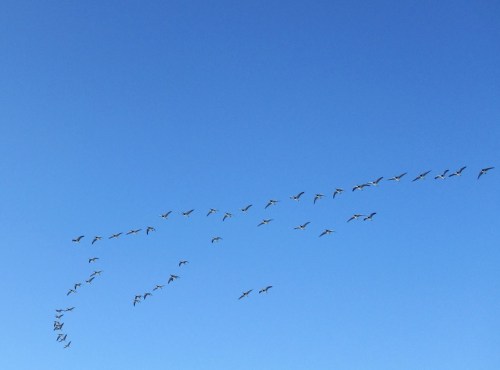 2 weitere Nonnengänse – nicht so scharf, aber optisch interessant – Vollbremsung durch entsprechende Flügelhaltung.