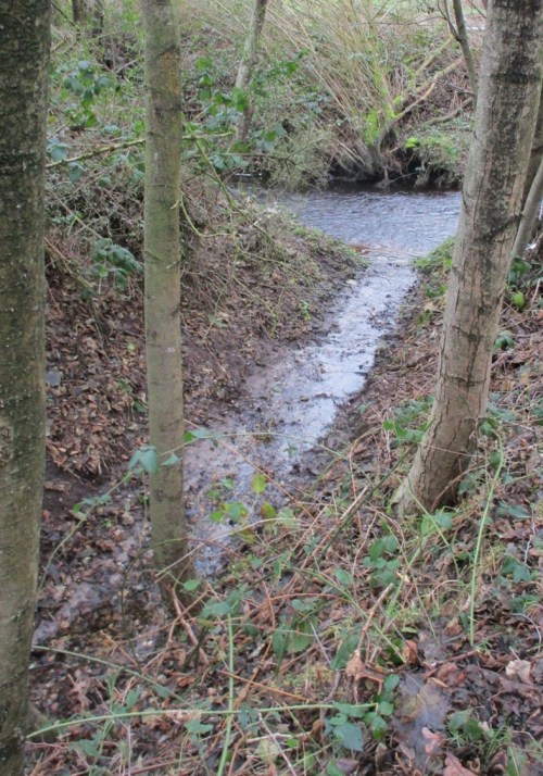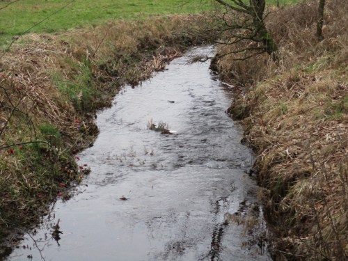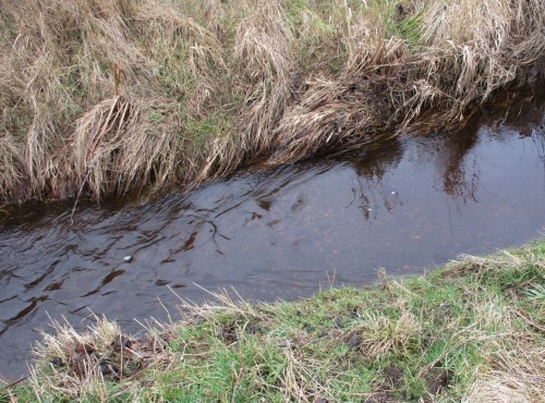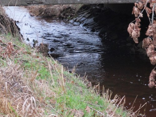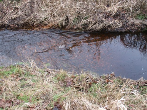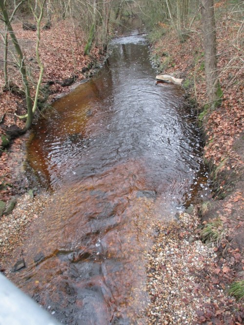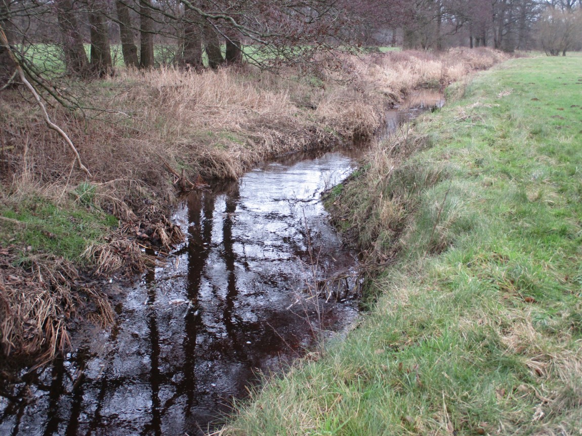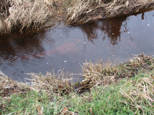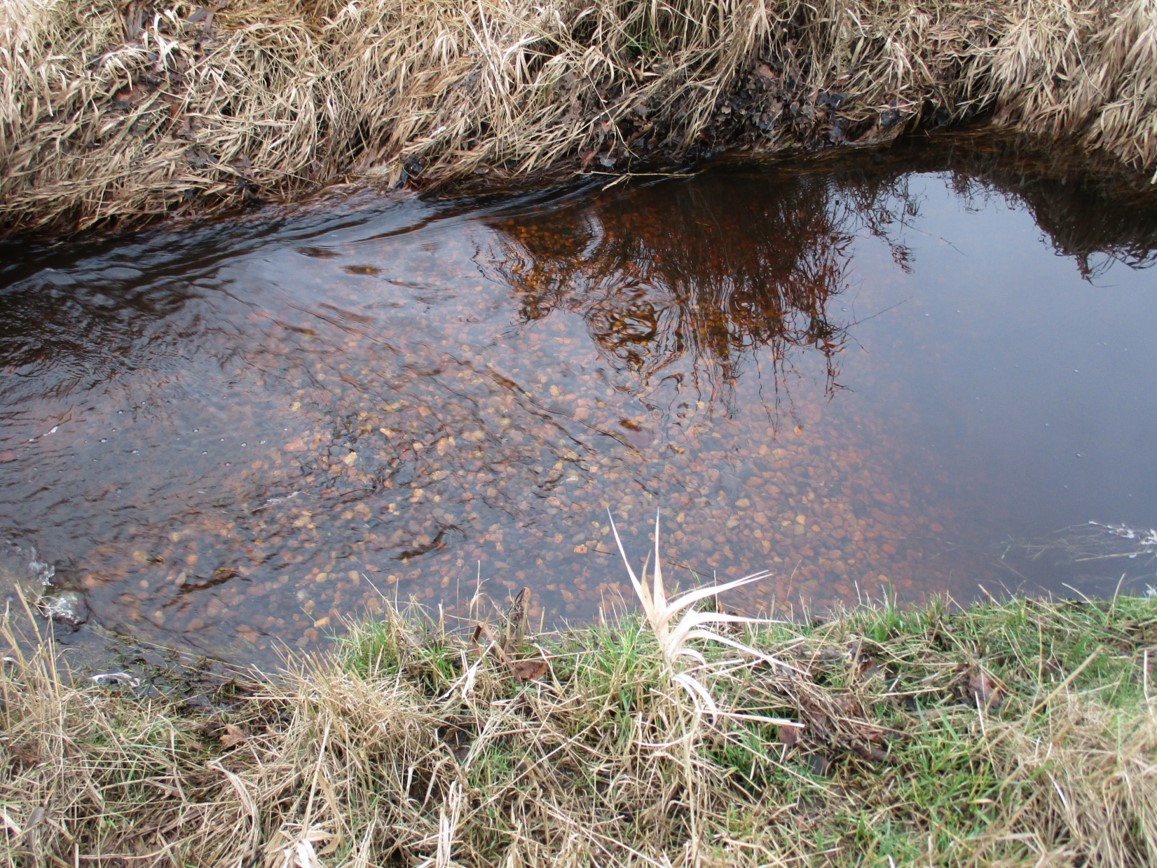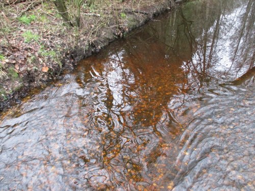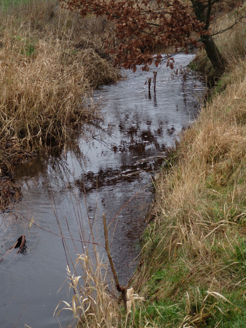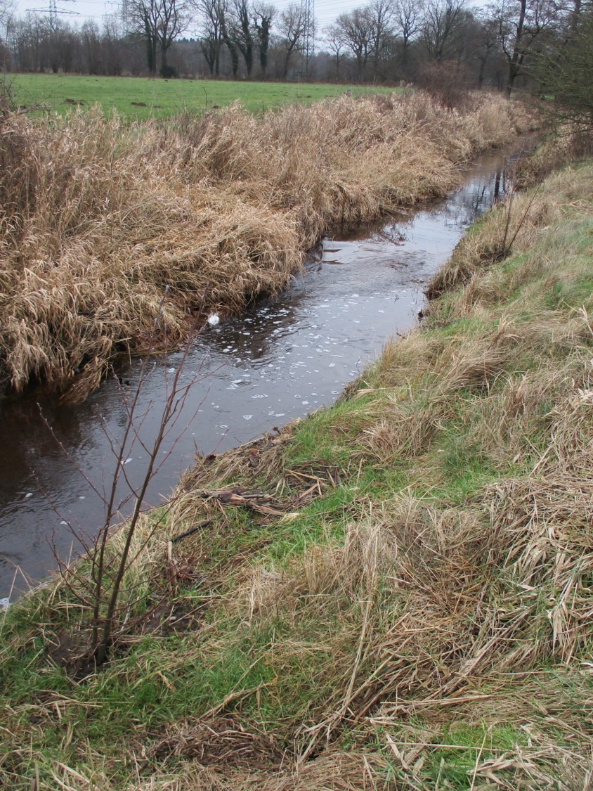 Nicht weit bachauf mündet ein kleiner, zum Entwässerungsgraben degradierter Bach in den / die Bek (wir liegen hier auf einer Sprachgrenze). In der übermäßigen Entwässerung der dortigen Flächen liegt die Ursache für die Freisetzung des Eisens.