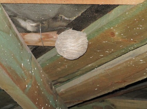 Neben diesem Wespennest waren noch einige der mandarinengroßen Variante vertreten. Mal sehen, wie viele Insektenköniginnen 2023 unseren Dachinnenraum als insektenfreundliches Haus charakterisieren.