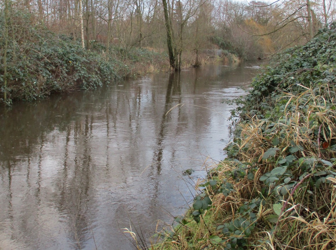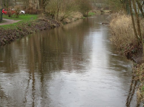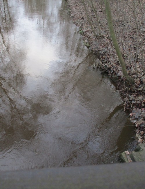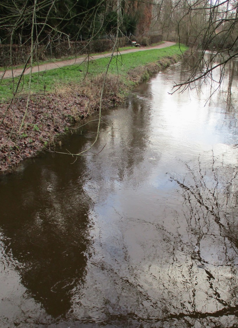 Solch eine Situation will genutzt werden. So startete ich zur städtischen Mühlenau, Pinneberg, um die jüngsten Treibselsammler („HuSt“, Hölzchen und Stöckchen) und Jahre bewährte Lenkbuhnen aus Kies in anderer Perspektive anzusehen – Abfluss am Pegel Rellingen: Mittelwasser plus 75 cm.