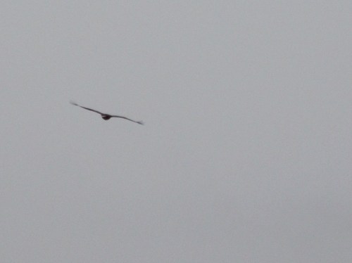 Dort kreist er eine Weile – ich erkenne 2 weitere, kreisende Großvögel – und zieht, südwärts, über die Elbe.