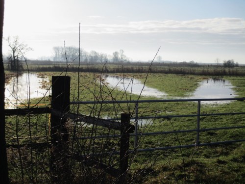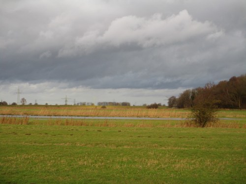 Ende Dezember 2022 – Sonne, Wolken über Marsch und Geest. Erste feuchte Kleinflächen werden sichtbar.
