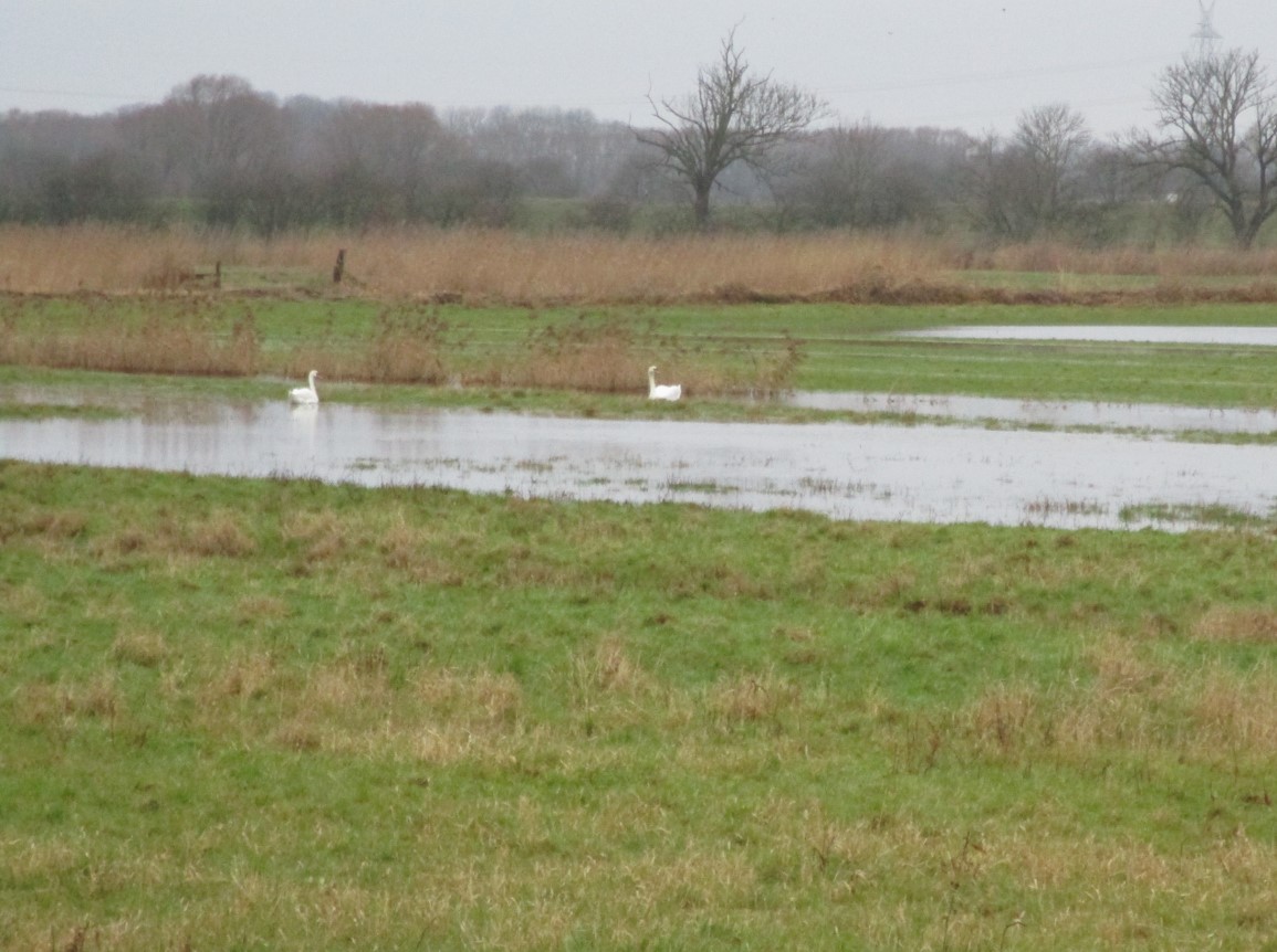 Im vorigen Beitrag wurde vom gegenwärtigen Zustand, flachseeartige Überschwemmungen auf Marschwiesen, berichtet. Hier folgt das „Vorher“, der Beginn – mit ein paar Vögeln.