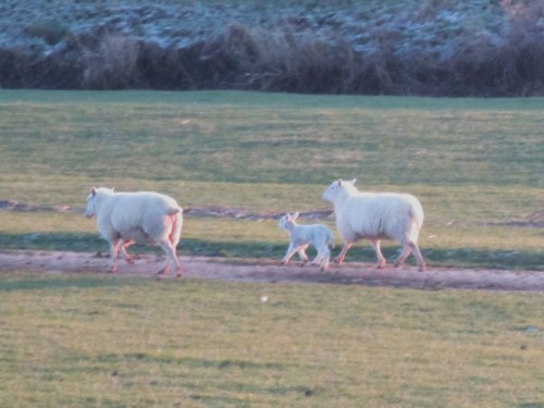 Aussendeichs. Kaum zu fassen – so klein und schon so rennen können! Die ersten 2023-Lämmer sind draussen.