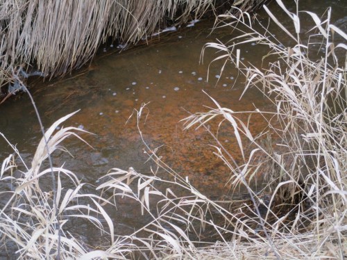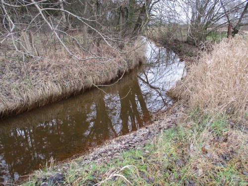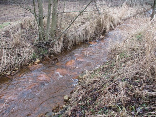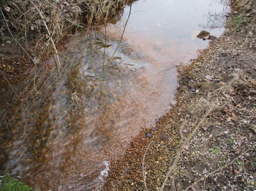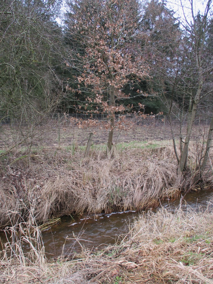 Nicht weit bachauf mündet ein kleiner, zum Entwässerungsgraben degradierter Bach in den / die Bek (wir liegen hier auf einer Sprachgrenze). In der übermäßigen Entwässerung der dortigen Flächen liegt die Ursache für die Freisetzung des Eisens.