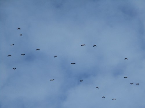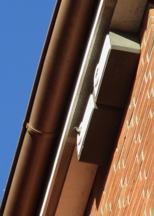 Es scheint, dass dieses Paar zur Zeit zwei Mauerseglerkästen mit Beschlag belegt. Das kann sich ändern, sobald gebrütet wird.