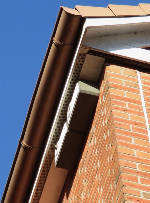 Da sind am rechten Turm 2 Mauerseglerkästen erkennbar. Ich berichtete über die Installation im Vorjahr – 10 Kästen ringsum, zu spät zum Nisten 2022 (jedenfalls haben wir nichts bemerkt), aber mit großem Interesse von der Vogelwelt zur Kenntnis genommen.