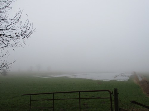 Geesthang „Am Hang“, Holm – Blick auf eingestauten Flachsee auf Marschwiese.