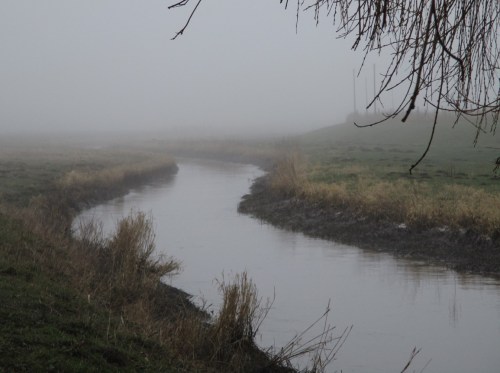 Blick gen Vogelstation – nicht existent, allerdings der gefüllte Marsch-Mäander vornan.
