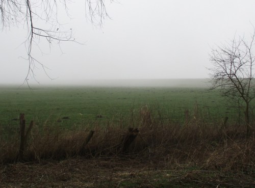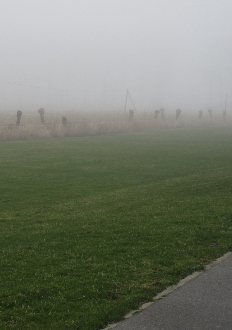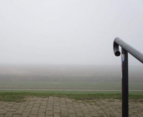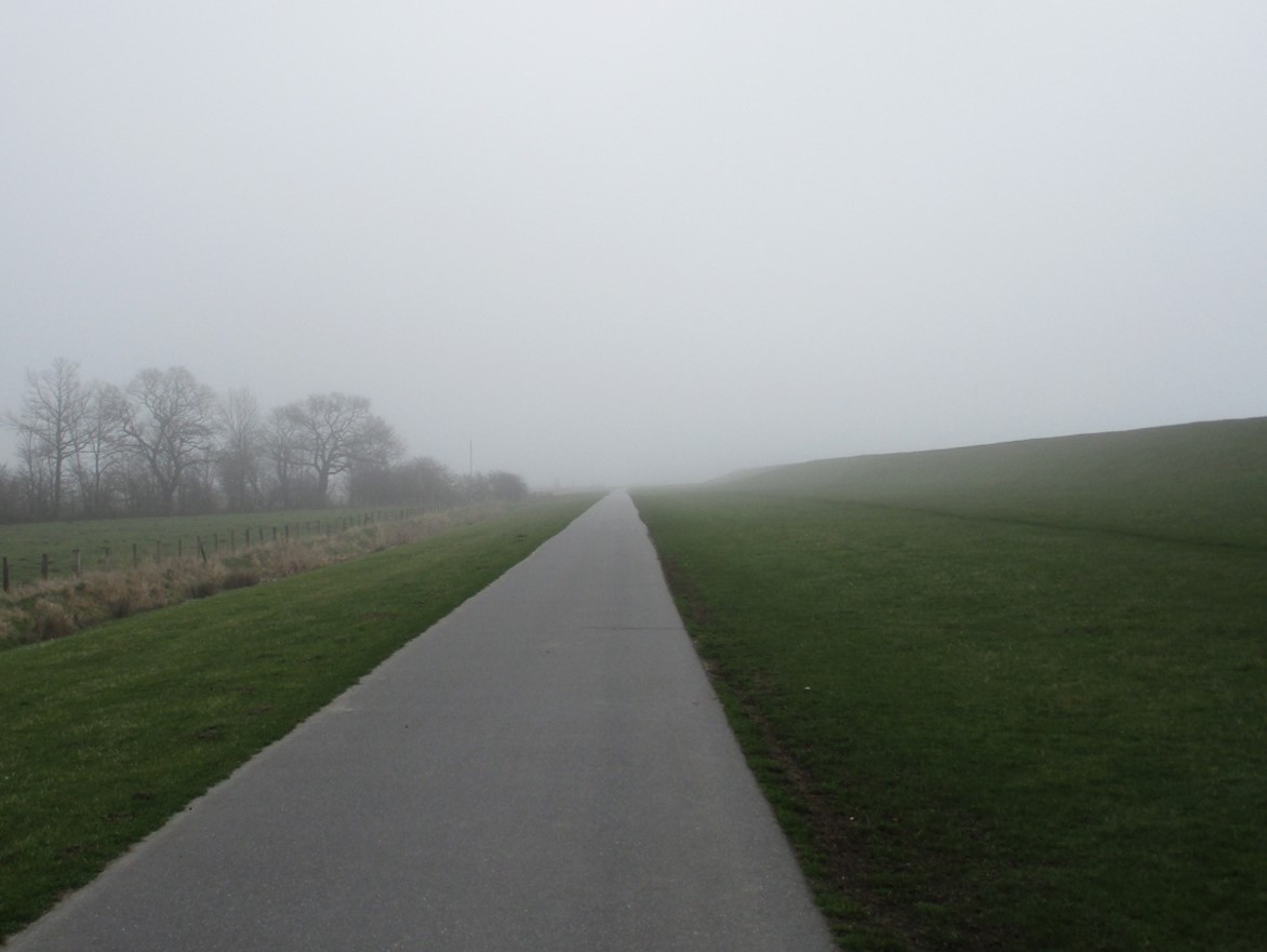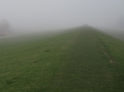 Elbdeich Hetlingen, Blick seewärts – ins Nichts … keine Masten, keine Elbe.