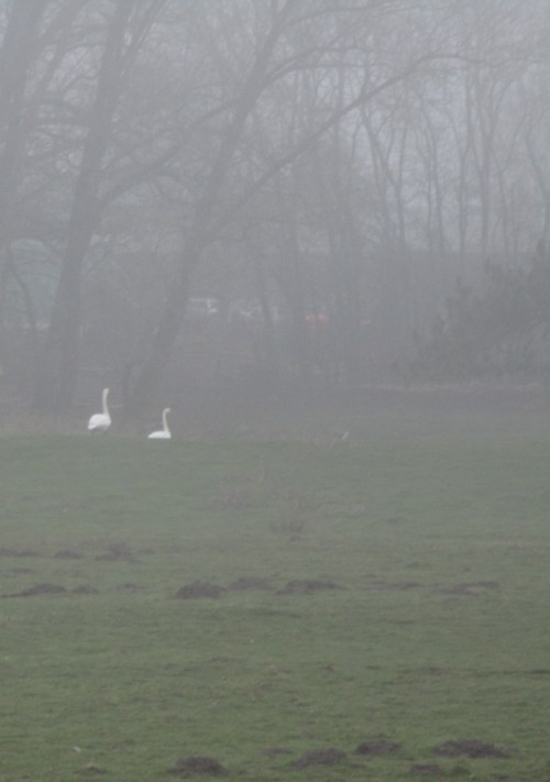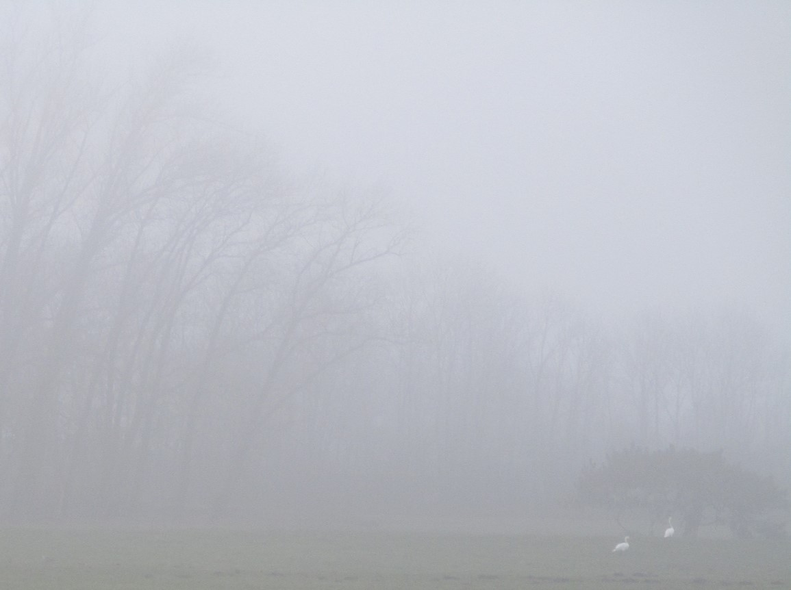 Querab Obstparadies – Nonnengänse, äsend, überfliegend, 3 Silberreiher.
