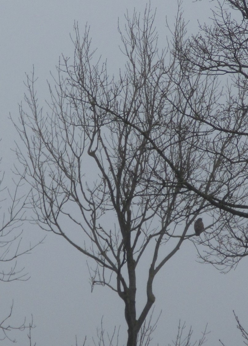 Nicht im Ab- und durch-die-Bäume-Flug erwischt. Nun sitzt da, nach Baumwechsel, „ein dickes Huhn“ – ein Seeadler.