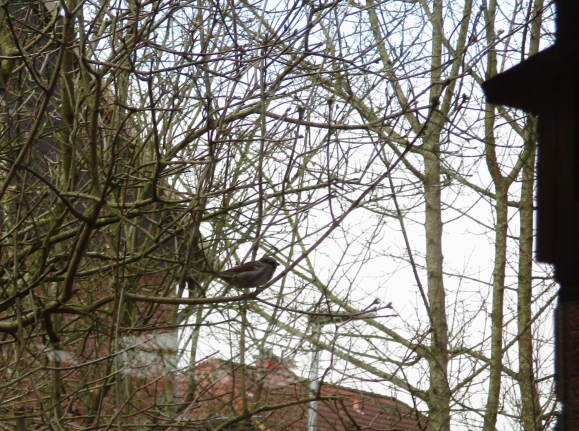 Ein weiterer Anwärter, der Hausspatz – beide Geschlechter kommen regelhaft, angesichts ihrer Häufigkeit rund ums Haus aber nicht auffällig oft.
