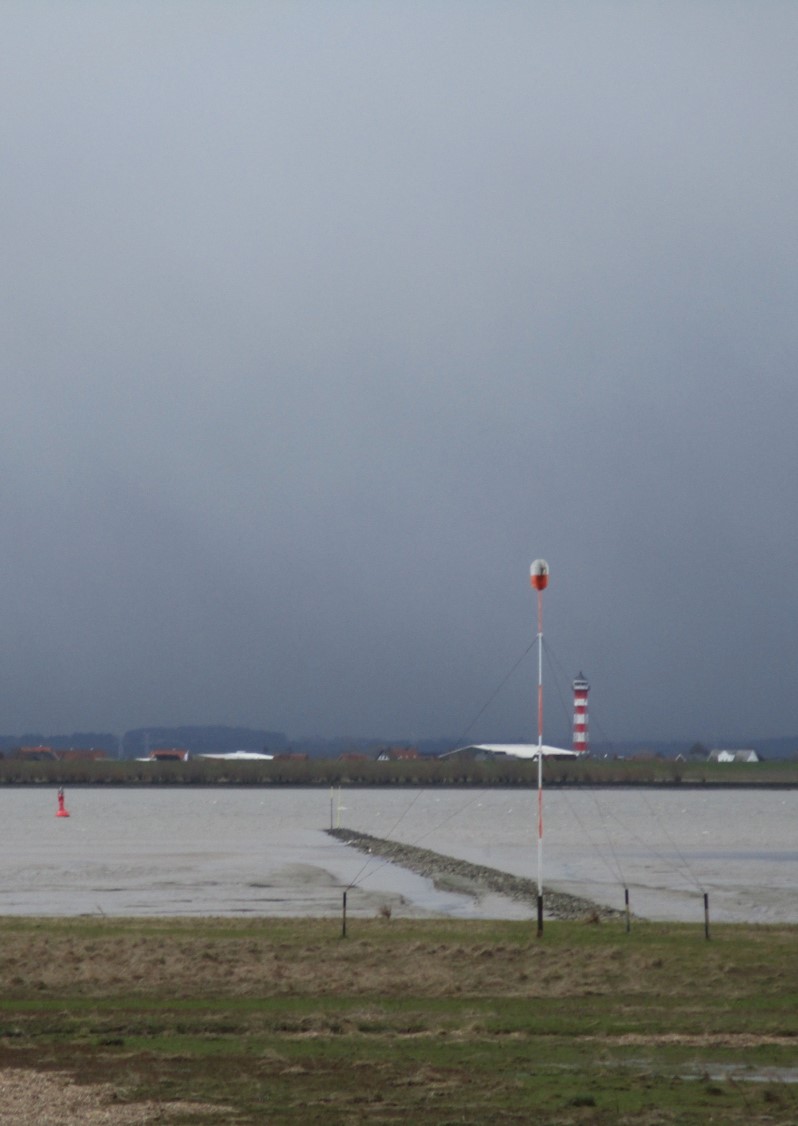 Auf dem Elbdeich – es ist Tideniedrigwasserzeit. Die Ebbe beendet ihr Ablaufen bei 1,18 m über dem mittleren Tideniedrigwasser.